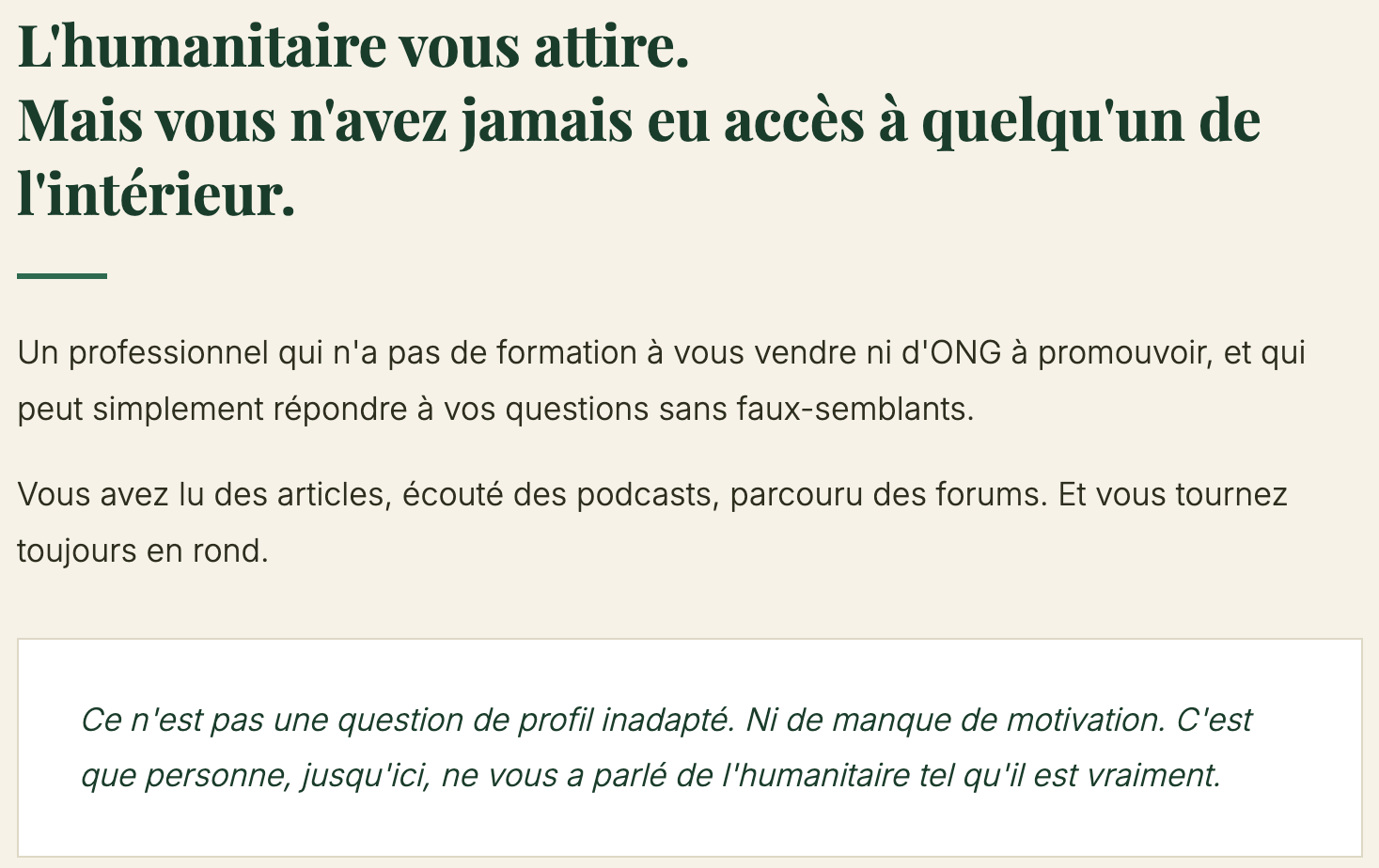 Vous rêvez de travailler dans l’humanitaire ? Vous vous interrogez sur les ONG, le terrain, les premières missions ? Les coulisses de l’humanitaire est un podcast qui explore la réalité du secteur, loin des fantasmes. À travers des témoignages sans filtre, on y parle de métiers, de carrières, de premières missions, d’engagement, de désillusions, de santé mentale, d’éthique et de limites. 🎧 Un podcast pour comprendre ce que signifie vraiment s’engager… avant de partir.